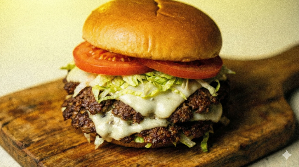 "AI, change the burger price to $15 and make the background look like summer."